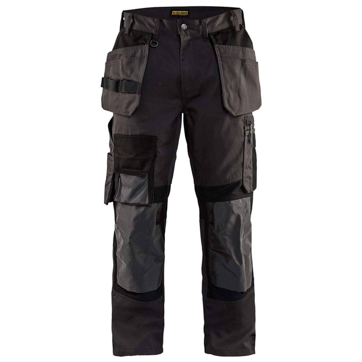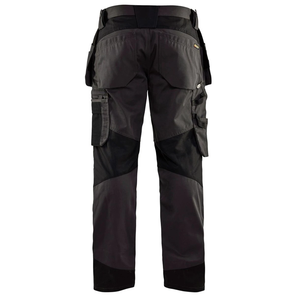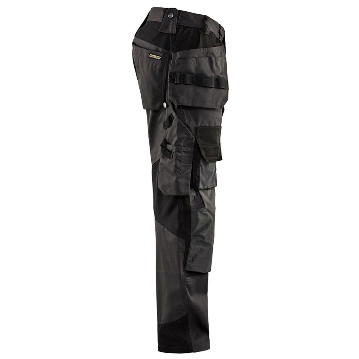 Gut aussehende, flexible und robuste Handwerker Arbeitshose mit sorgfältig entwickelten Details. Die haltbare Hose mit präzise entworfenen Details bietet Bewegungsfreiheit, Funktionalität und Komfort. Das Material ist robust und die Kombination mit Stretch Einsätzen macht die Hose ideal für z.B. Boden- und Fliesenleger, die oft in knienden Positionen arbeiten. Die Hose hat Stretch Einsätze hinten, an den Vordertaschen und an der Rückseite der Knie für bessere Bewegungsfreiheit. Sie hat eine Vielzahl strategisch platzierter funktioneller Taschen wie eine Messertasche aus einem verstärkten Stoff mit Kevlar®, Patte und Stretch Einsatz oder eine leicht zugängliche Handytasche aus Stretch Material, die für die meisten Handys geeignet ist.
