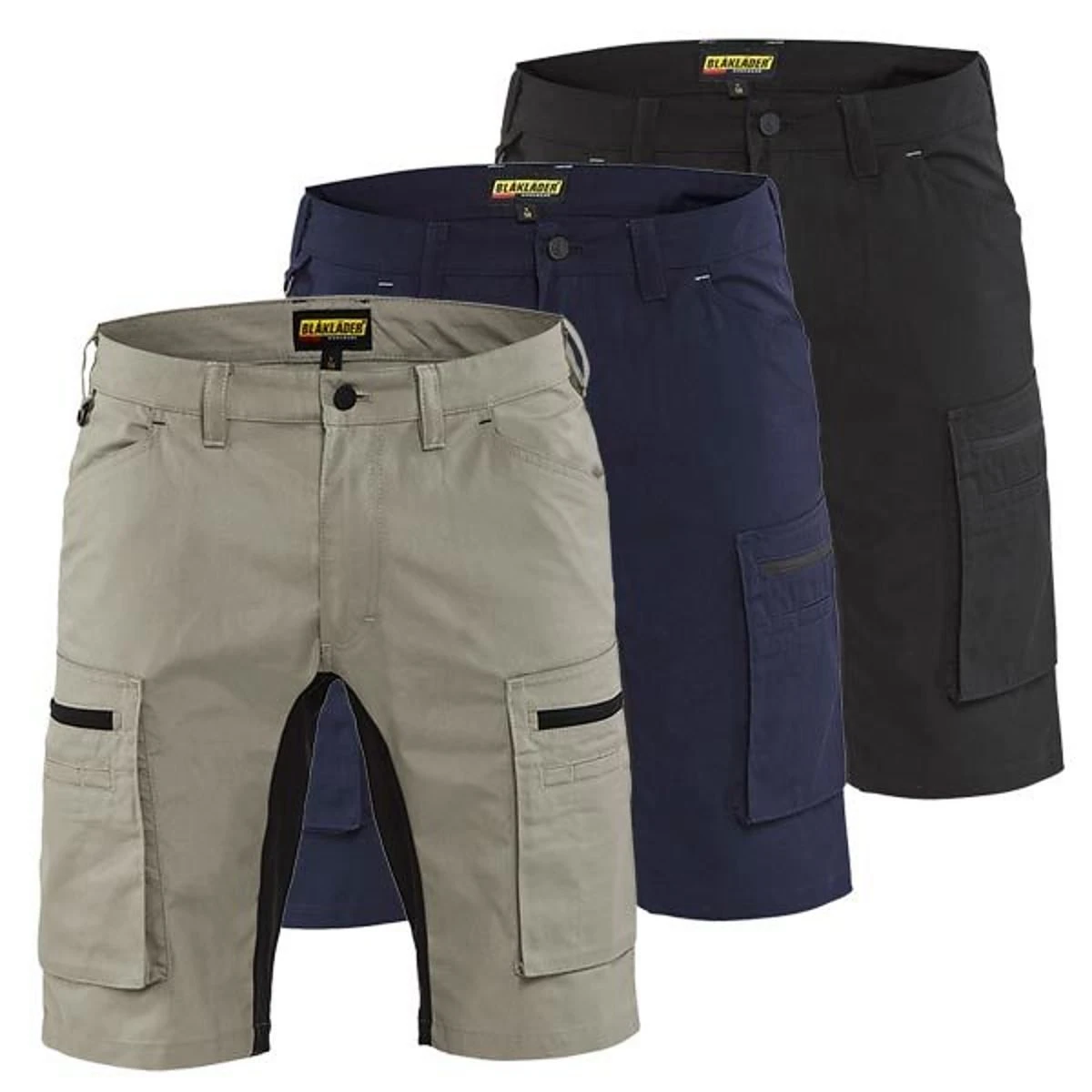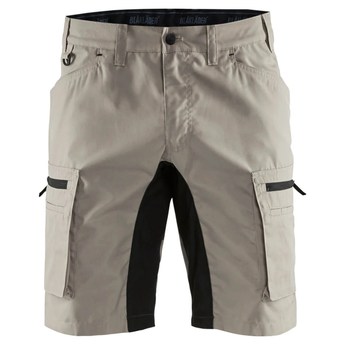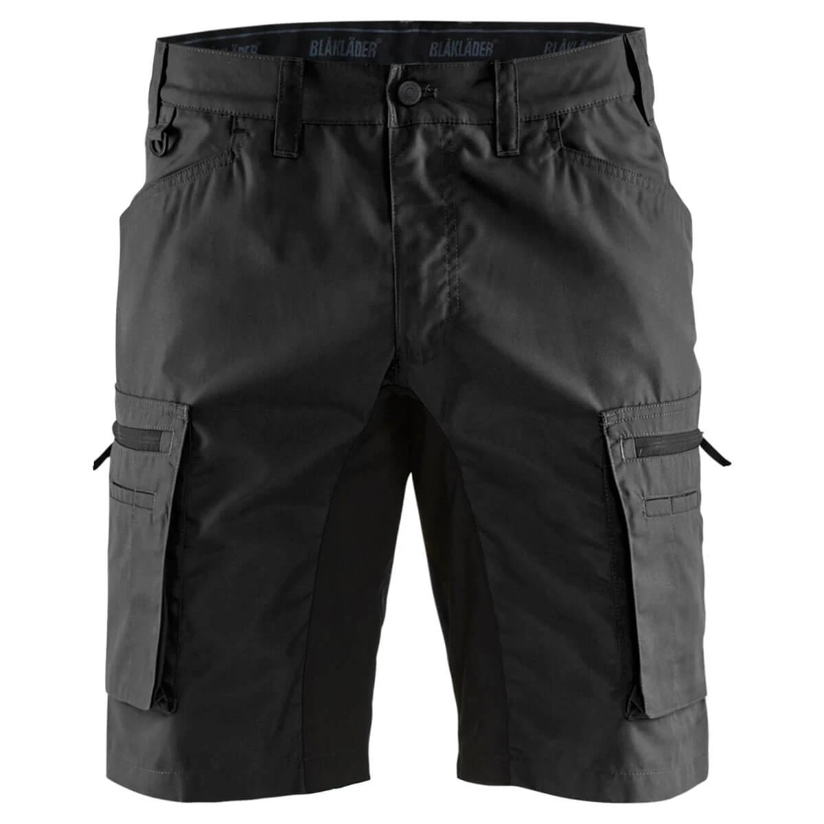 Blakläder 1449 Service Shorts Stretch, hochmodernes Gewebe mit kühlenden und schnelltrocknenden Eigenschaften – weich und trotzdem robust, elastische Einsätze aus Stretch im Bereich Gesäß und Innenbein, stabile Gürtelschlaufen, verdeckte Gesäßtaschen, Cargotaschen beidseitig mit Balg und Reißverschluss und multifunktionaler Aufteilung, Kunststoffreißverschluss, gummierter Verschlussknopf, innenliegende Handytasche mit Netzgewebe, großvolumige Seitentaschen mit viel Stauraum