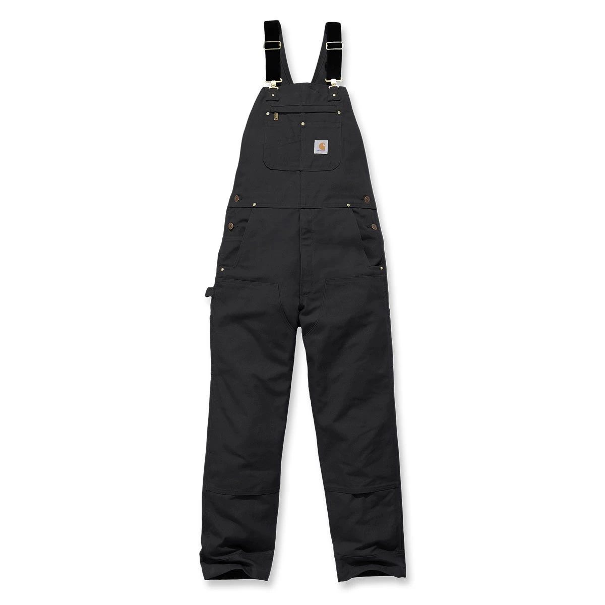 Die Carhartt Bib Overall besteht aus einem weichen und trotzdem sehr robusten Baumwoll- Duck. Die elastischen Hosenträger kann man auch vorne mit einem Gurtband-Schieber an den Trägern verstellen. Zudem hat die Latzhose eine Moderne Latztasche zum sicheren Verstauen von Elektronik-Equipment. Die Seitensätze sind aus Stretch für einen guten Sitz. Außerdem hat die Latzhose Vordertaschen und zusätzlich noch weitere verstärkte Taschen auf der Rückseite. Auf der rechten Seite ist eine Zollstock-Tasche und eine Hammerschlaufe. An den wichtigsten Belastungspunkten sind Metallnieten zu finden. Die Hauptnähte wurden dreifach genäht.
