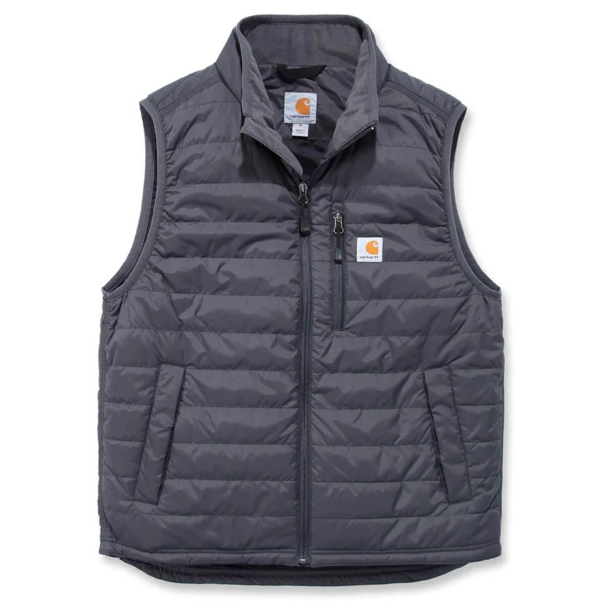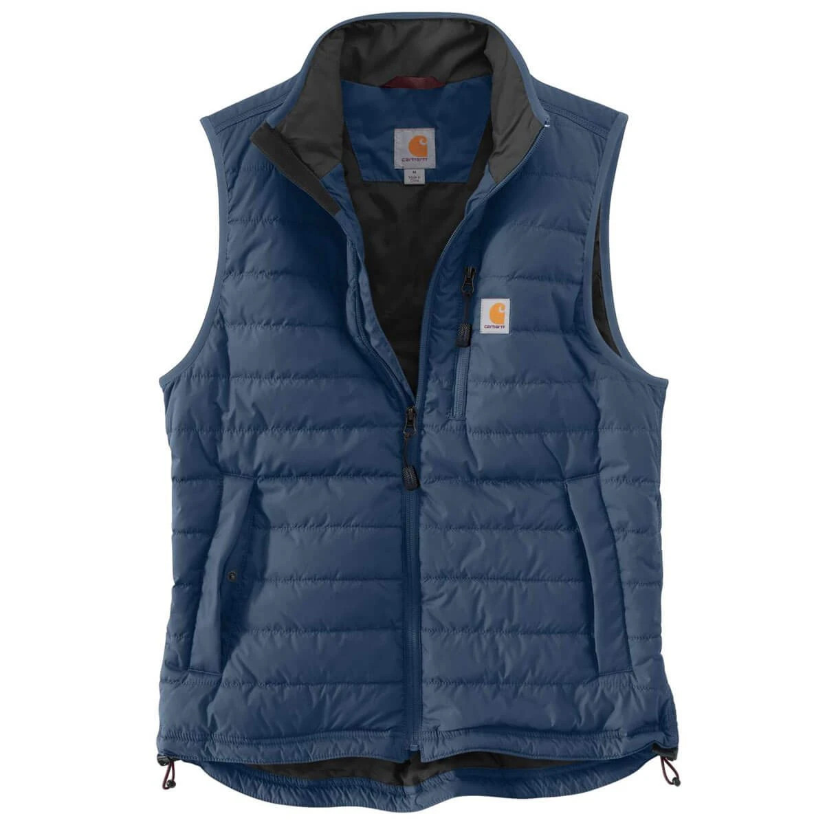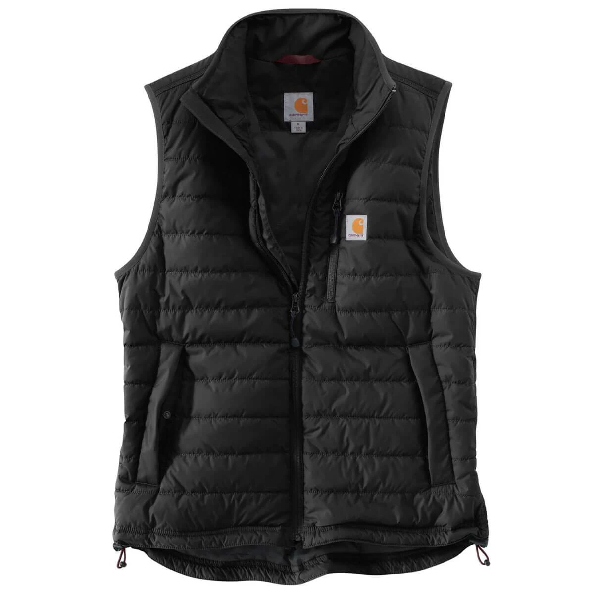 Die Carhartt Gilliam Vest ist eine leichte isolierende Steppfutterweste. Um den Oberkörper an kühlen Tagen besser vor Kälte zu schützen ist die Herrenweste ideal. Der Hauptreißverschluss ist ein durchgehender Frontreißverschluss, welcher oben in einem Kinnschutz mündet. Alle Hauptnähte sind dreifach gesteppt. Der Saum ist verlängert und durch einen Kordelzug auf den jeweiligen Träger anpassbar. Die Passform ist etwas weiter für ein komfortables Tragegefühl.