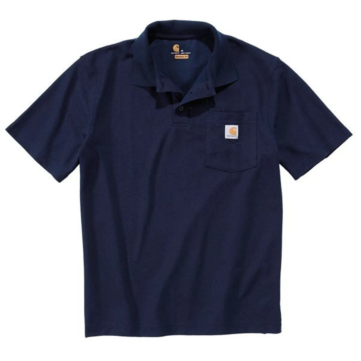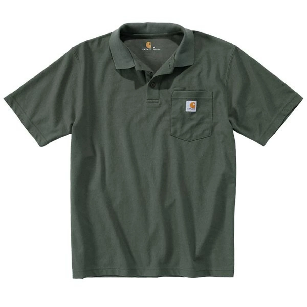 Carhartt Contractors Work Pocket Polo K570, farbechtes und robustes Gewebe mit schmutzabweisendem Finish, verstärkter Ripstrick Kragen, kurze Ärmel ohne Saum für verbesserte Bewegungsfreiheit, Drei-Knopf-Leiste, Brusttasche links mit gesticktem Carhartt-Logo, Seitenschlitze am Saum