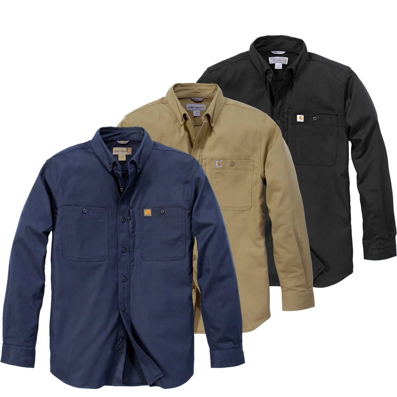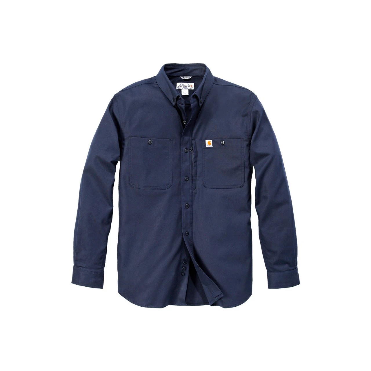 Das Carhartt Rugged Professional Work Shirt mit langen Ärmeln ist ein widerstandfähiges Hemd aus robustem Mischgewebe. Das Obermaterial ist elastisch und hat die Rugged Flex® Technologie, was es sehr schön in der Bewegung mitgehen lässt. Zudem ist es sehr schmutzabweisend und verzieht sich durch die enge Webung nicht. Das Hemd hat einen Button-Down-Kragen und eine frontseitige Knöpfung. Die aufgesetzten Brusttaschen können ebenfalls durch Knöpfe geschlossen werden, zudem hat die linke Brusttasche noch ein Extra-Fach mit Reissverschluss.