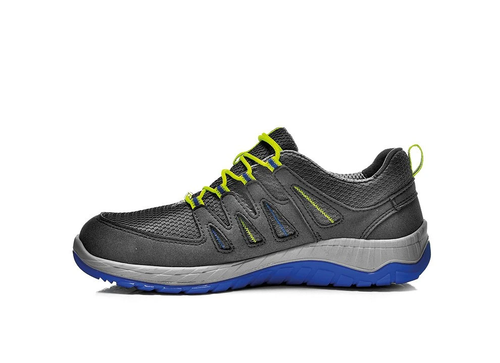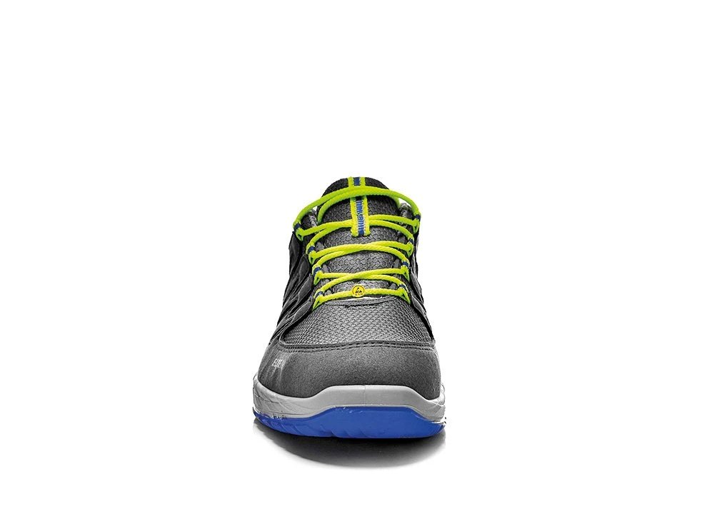 Der Schuh soll ein Leichtgewicht bleiben. Deshalb haben die Sicherheitsschuhe eine Zehenschutzkappe aus dünn aufgebautem Stahl. Die Kappe bietet ausreichend Platz im Inneren und bietet ein großzügiges Volumen. Für zusätzliche Sicherheit im Dunkeln sorgen aufgebrachte Reflexelemente an Schuhspitze und im Bereich der Schnürung. Die ESD-fähige Innensohle sorgt für elektrostatische Eigenschaften. Die Laufsohle ist aus PU/TPU und ist leicht profiliert. Sie bietet aufgrund ihres guten Mischungsverhältnisses einen perfekten Grip und maximal rutschhemmende Eigenschaften.