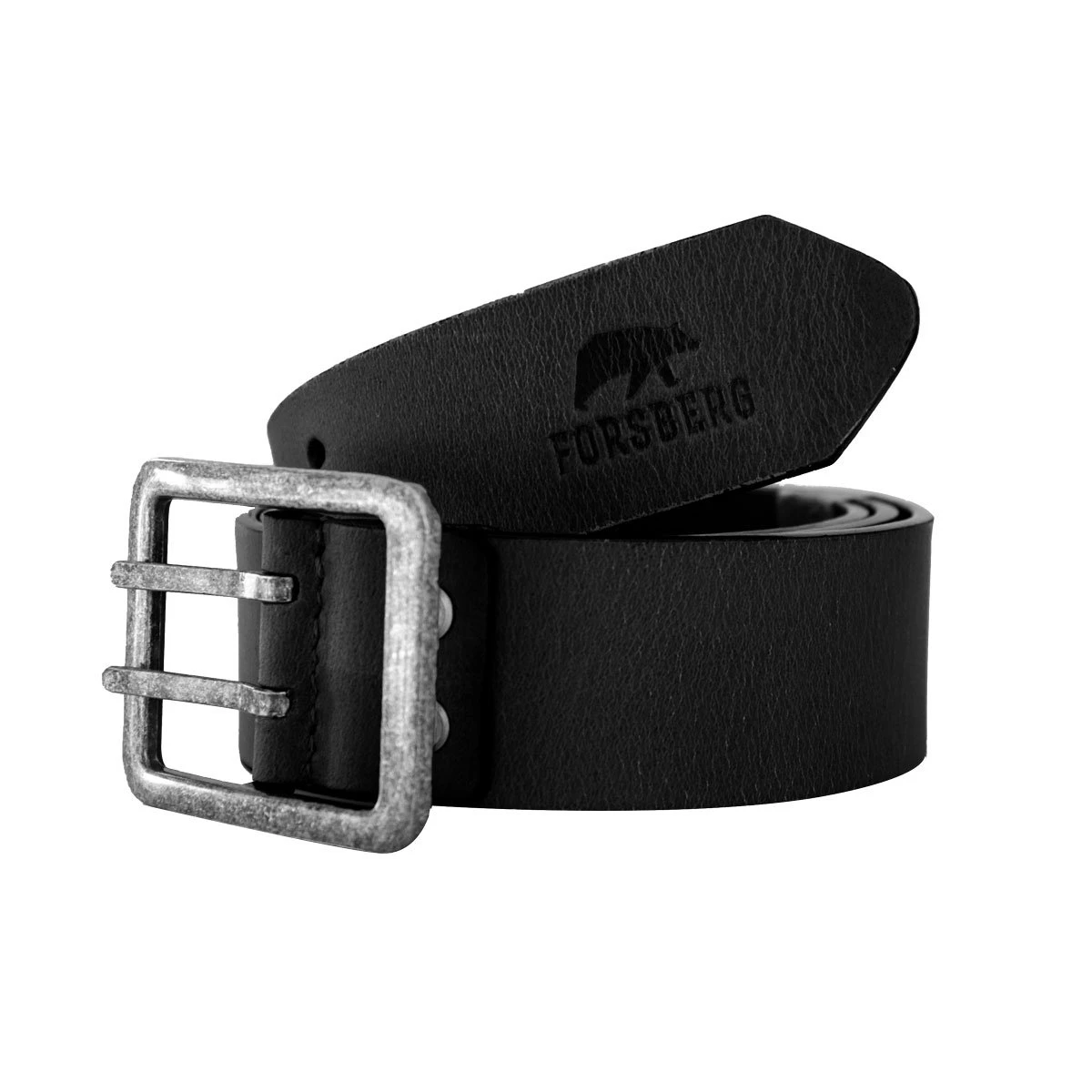 Der FORSBERG Gürtel ist aus hochwertigem Vollleder gefertigt und besitzt eine robuste Schnalle mit Doppeldorn-Verschluss aus Metall. Das FORSBERG Logo ist in die Front des Gürtels geprägt und verleiht dem Gürtel einen hochwertigen Eindruck. Er ist in einem dezenten schwarzen Farbton und passt zur Arbeitshose sowie auch zur Jeans, wenn man abends ausgeht.