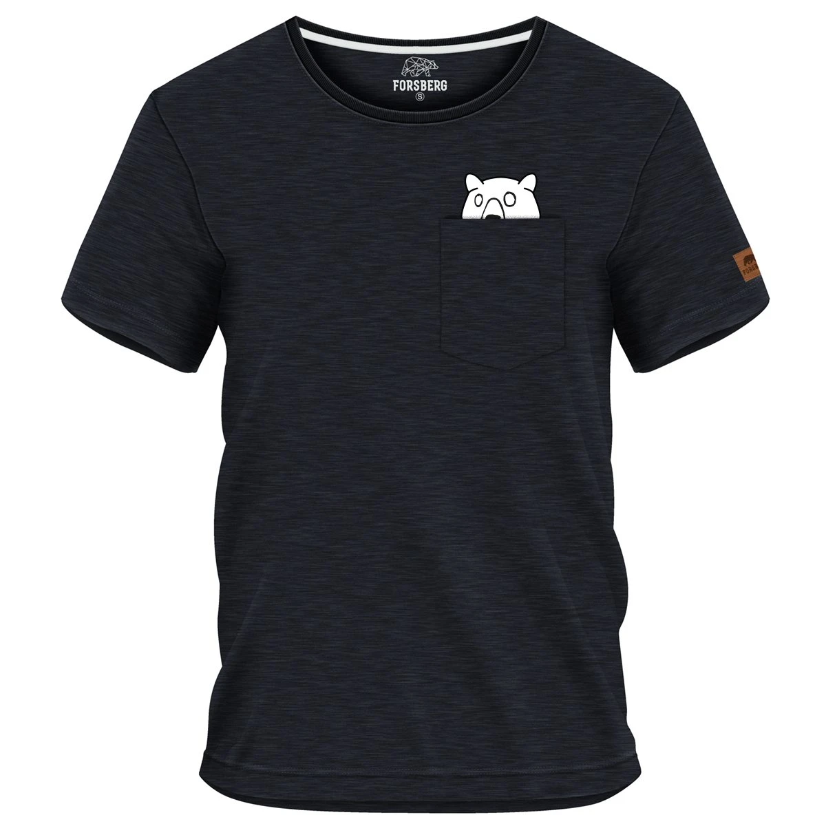 Dieses Shirt rockt! Das hochwertige ModernFit T-Shirt RAGNARSON ist aus der FORSBERG Sport Edition Serie. Es ist durch die ringgesponnene Herstellung auch sehr formstabil. Es hat einen doppelt gelegten Rundhalsausschnitt, Nackenband und einen elastischen Kragen aus Rippstrick. An Bund und Ärmelbündchen gibt es eine doppelte Steppnaht. Auf dem linken Oberarm ist ein brauner FakeLeather-Patch mit dem FORSBERG Bären. In der Brusttasche wartet der Rock`n`Roll Bär auf seinen Einsatz.