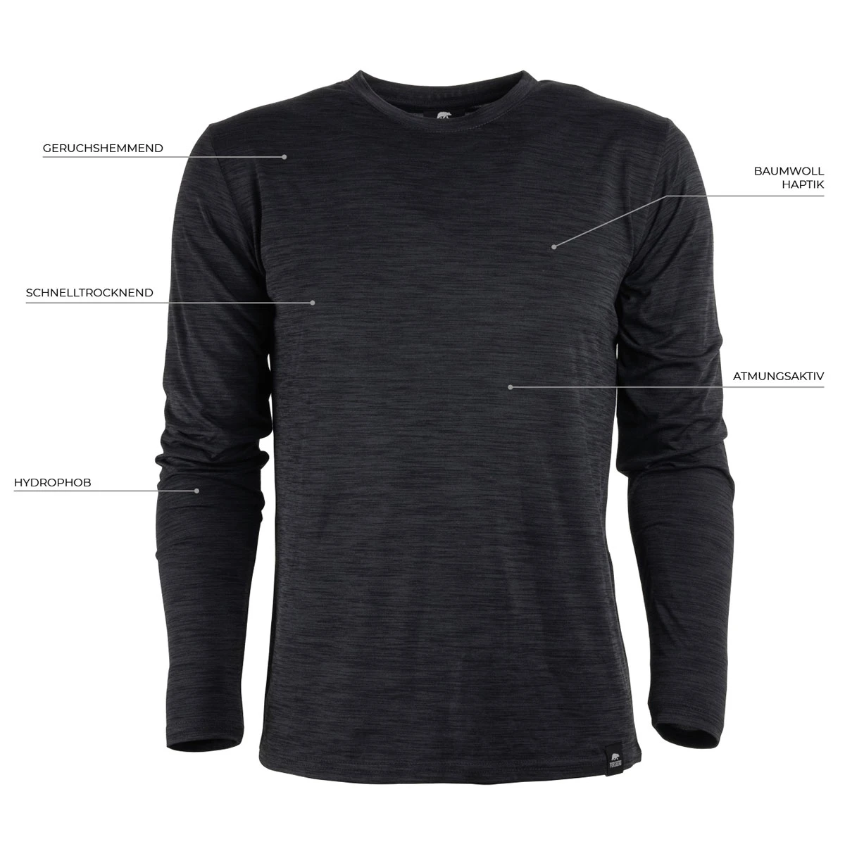 Auf das Anfassgefühl wurde bei der Entwicklung des Gewebes höchster Wert gelegt. Die Anfassqualität verhält sich fast identisch mit dem eines Baumwollshirts. Die verstärkten Nähte des Shirts erzeugen kein unangenehmes Tragegefühl oder gar Druckstellen auf der Haut. Leicht, elastisch und anliegend ist der Rundhalsausschnitt ausgeführt. Der taillierte und sportliche Schnitt des Funktionsshirts ist bewusst gewählt. Nur eine Faser, welche am Körper anliegt, kann optimal arbeiten und ihre volle Wirkung entfalten.
