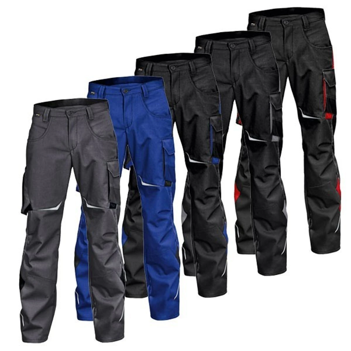Ausstattung: Gewebe aus leichtem und robustem Ripstop-Gewebe, ergonomische Linienführung für mehr Bewegungsfreiheit, 2 eingearbeitete Seitentaschen, 2 Gesäßtaschen mit CORDURA®-Verstärkung, 1 lose doppelte Meterstabtasche mit CORDURA®-Verstärkung und zusätzlicher Reißverschlusstasche, perfekt geeignet für Smartphones, vorgeformtes Knie mit Bewegungszone, Reflexelemente vorne, seitlich und hinten für bessere Sichtbarkeit