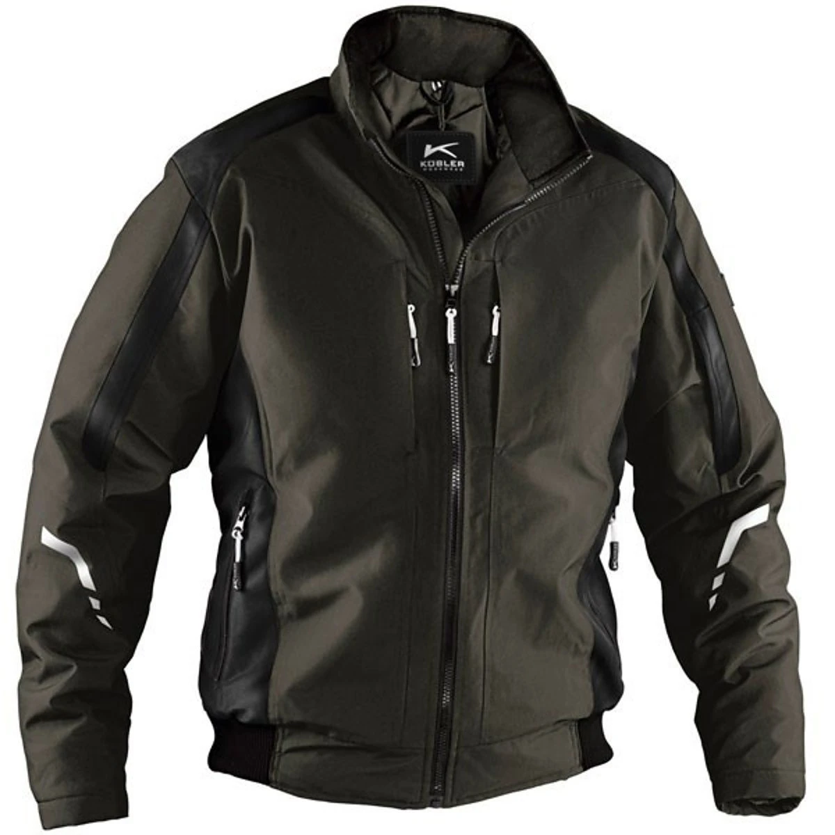 Kübler Wetterblouson 1367, wasserabweisendes, winddichtes und atmungsaktives Polyestergewebe, wattiertes Steppfutter innen, Kragen mit Fleecefutter, taillierter Schnitt mit ergonomisch geformten Ärmeln, Bund mit RippStrick, Strickbündchen innenliegend, je zwei Seitentaschen und Brusttaschen mit Reißverschluss, durchgehender Frontreißverschluss mit Kinnschutz, Ärmeltasche, Innentasche, reflektierende Elemente Vorder- und Rückseitig