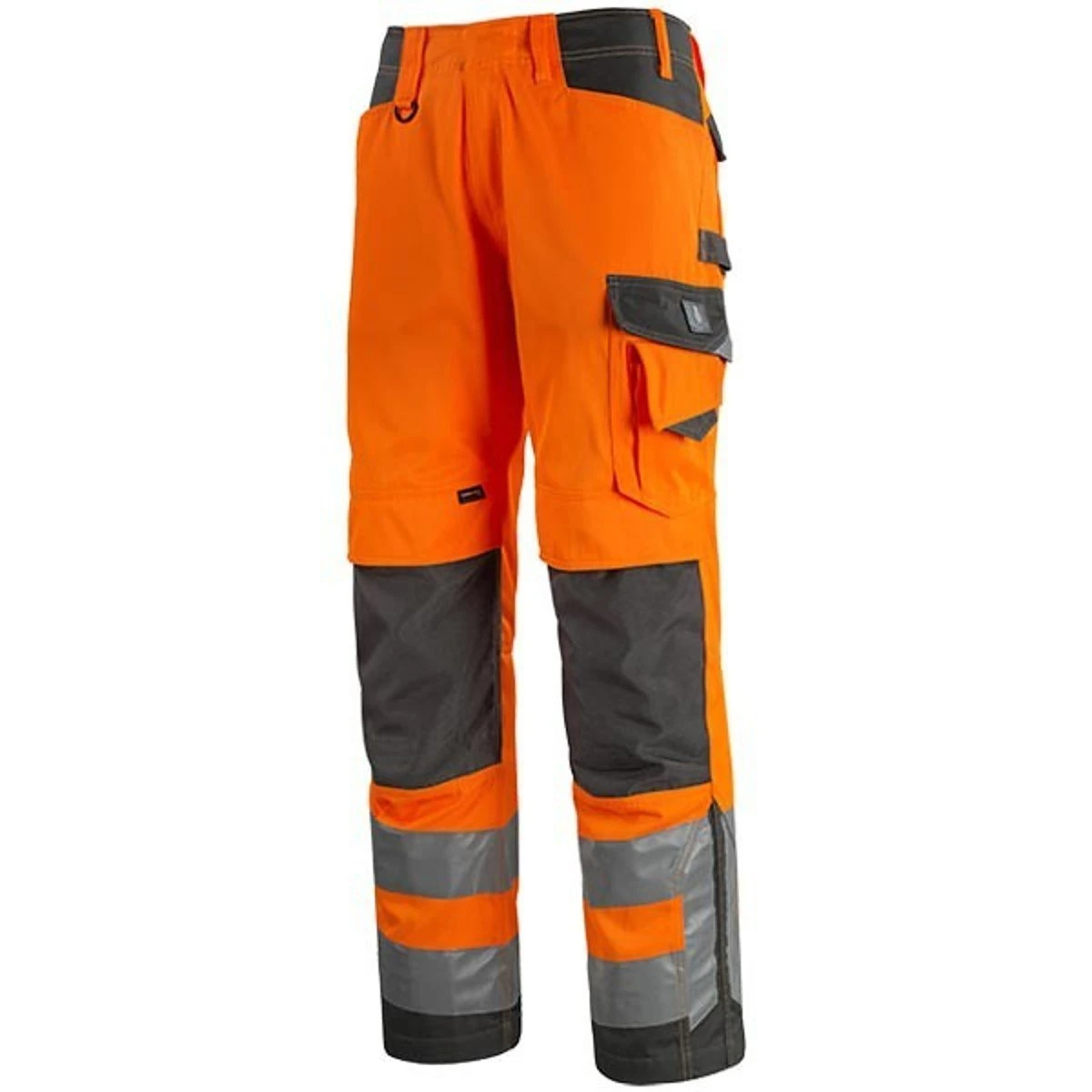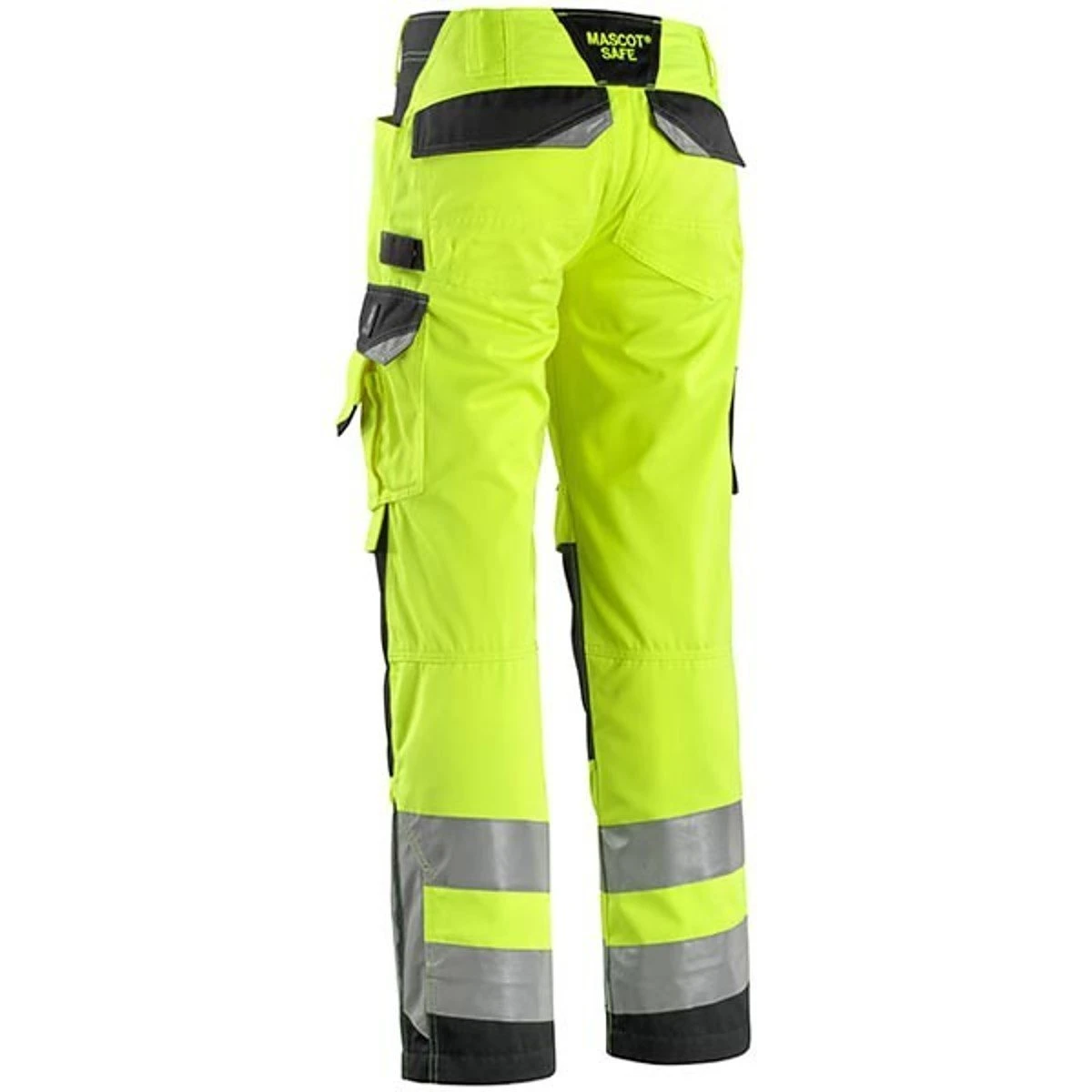 Mascot Warnschutzhose Kendal 15579; die dreifachen Kappnähte an den Beinen und im Schritt sorgen für eine langlebige und strapazierfähige Hose, die Teflon®-Behandlung macht das Produkt schmutzabweisend und gewährleistet eine hohe Sichtbarkeit, die Hosen-Beine können in jeder Größe um 3cm verlängert werden, durch auftrennen der roten Naht auf der Innenseite der Hosenbeine, Kniepolstertaschen sind aus stabilem CORDURA-Gewebe verstärkt, Eingriff für Kniepolster von oben – mit Klettverschluss auf der Außenseite der Patte so sinkt das Risiko an Bedienhebeln hängen zu bleiben, Handyschenkeltasche mit Magnetverschluss, ergonomisch geschnitten für optimale Bewegungsfreiheit, Hi-Vis Gruppe Y, zerifiziert lt. EN ISO 20471 – Kl.2