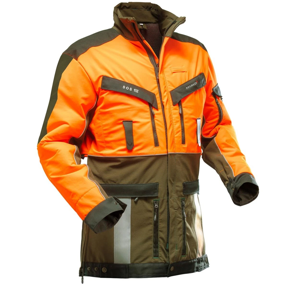 Funktionsjacke für Extremeinsätze, extrem widerstandsfähiger aber flexibler Oberstoff – wasserabweisend, hohe Bewegungsfreiheit durch Pfanner Stretch-AIR Technologie, Schulterverstärkungen aus Kevlar® wasserdicht, Brusttaschen mit Signalbandöffnung und wasserdichten Reißverschlüssen, Bauchtaschen mit wasserdichten Reißverschlüssen, zusätzliche Rückentaschen, Ärmeltasche mit seitlichen Reißverschluss, Patte und Klettverschluss, 50cm lange Entlüftungsschlitze im Achselbereich, Zwei-Wege-Reißverschluss mit Windflap, Bundweite kann über Druckknöpfe verstellt werden, innenliegende Ärmelbündchen aus Funktionsfaser, aussen verstellbar mit Druckknöpfen, breite Reflexstreifen