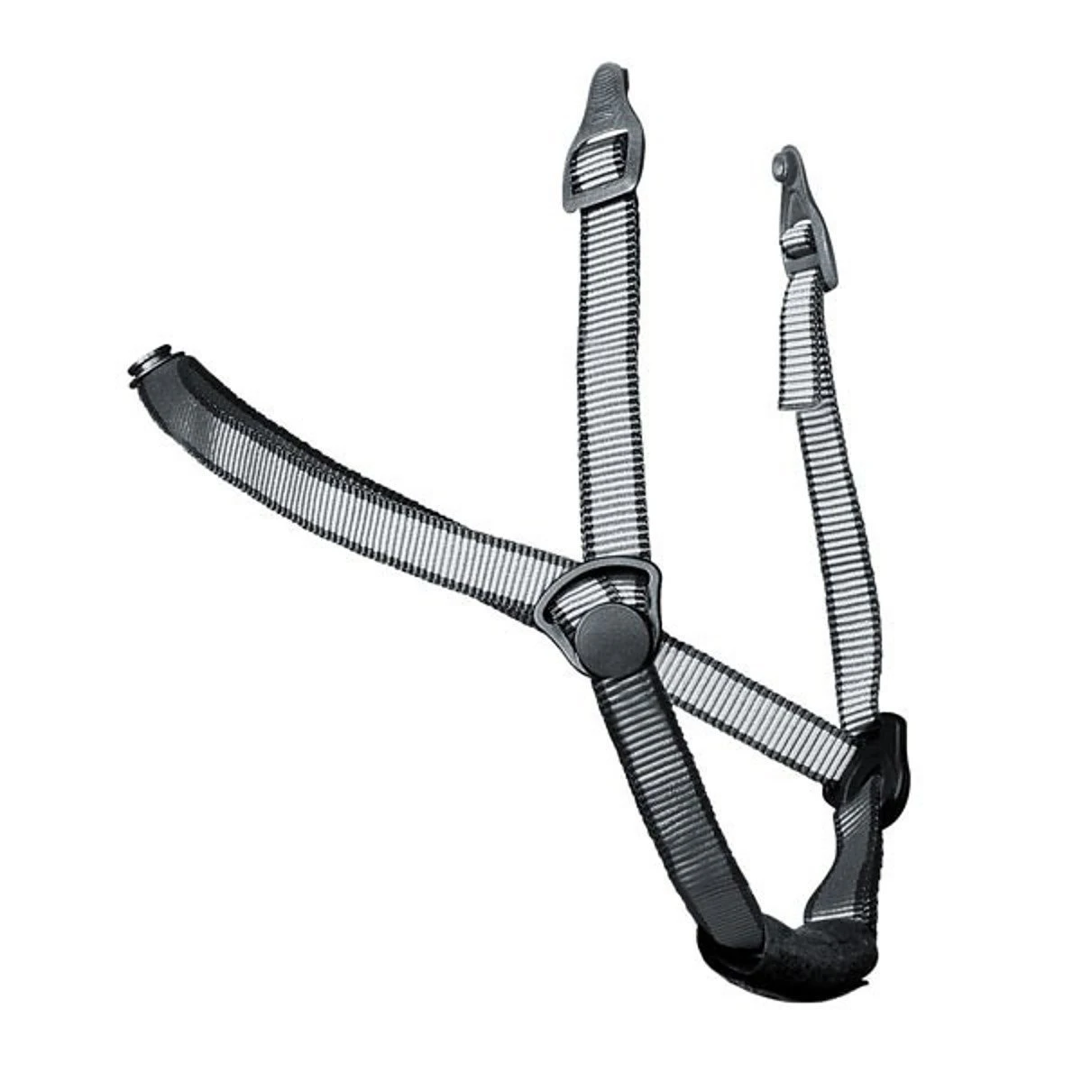 verstellbarer Kinnriemen zum Einclipsen, mit softem Kinnschutz, kann von der Länge und vom Winkel her verstellt werden, wird intelligent am Ohrschützer vorbeigeleitet