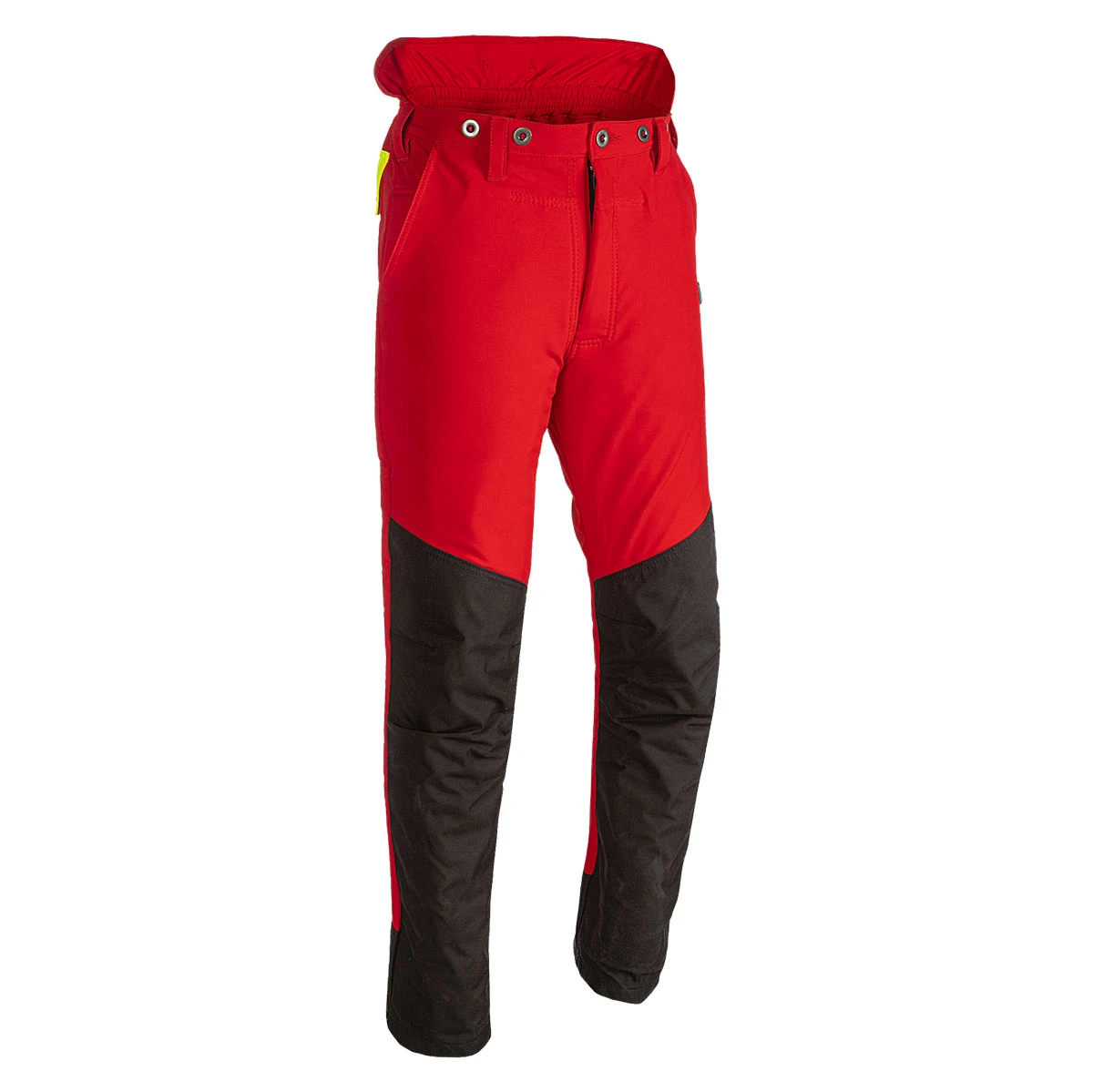HAUPTMERKMALE • Wasserabweisendes und elastisches FREEDOM 2 Obermaterial • 6-lagige Schnittschutzeinlage vorne • Vorderschlitz mit Reißverschluss – mit einem Knopf zu verschließen • 2 eingesetzte Taschen • 1 Zollstocktasche • 1 aufgesetzte Gesäßtasche mit Patte • Elastischer Bund mit Gürtelschlaufen und Knöpfe für Hosenträger • Latz hinten mit Knöpfen für Hosenträger • Doppel-Nahtversteppung bis Kreuzbereich hinten • Schnittschutzhoseklasse 1